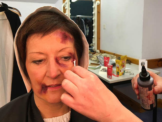 We are hugely indebted to Babs for her amazing talent and ability to calmly get us all made up and on time. This must have been a huge challenge given the numbers involved and that many of us had to be "bruised and bloodied" quite late into the performance.